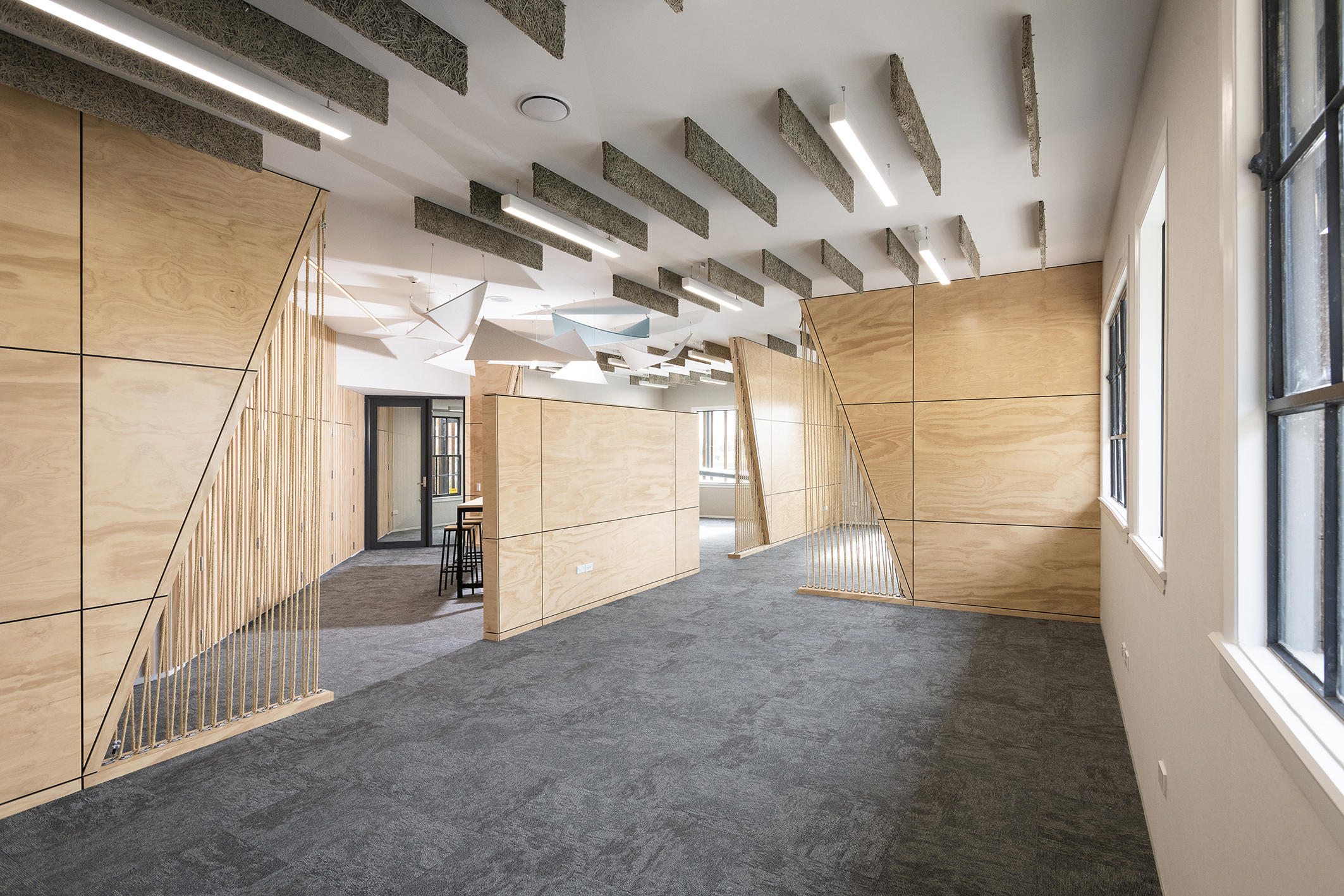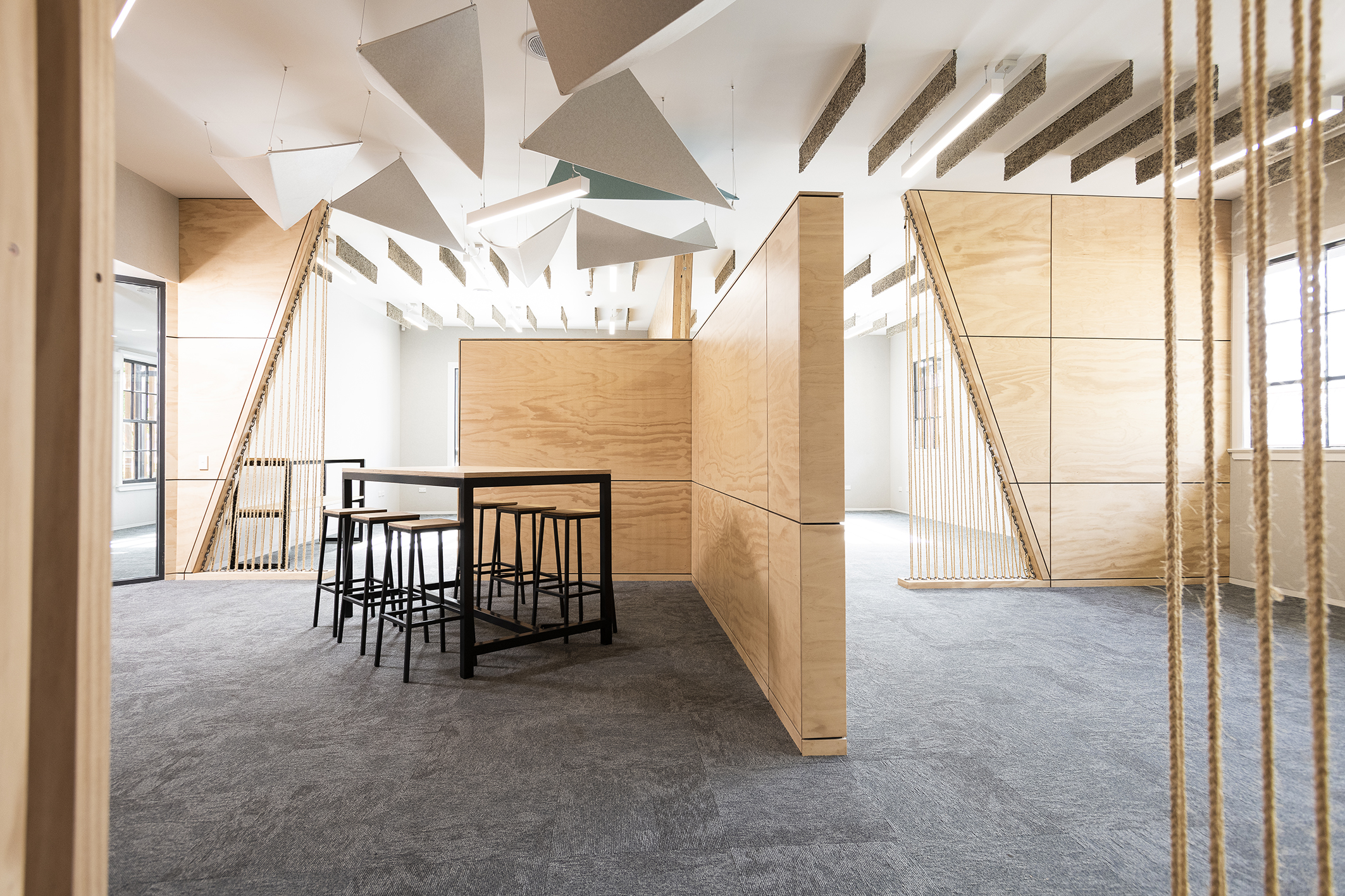 Careful planning and acoustic design created spaces that allow for collaboration between staff members from different parts of the business, in a welcoming and light-filled space, where natural and modern materials complement each other. Clever choice of materials complements the client’s business and ensure a comfortable, human feeling.