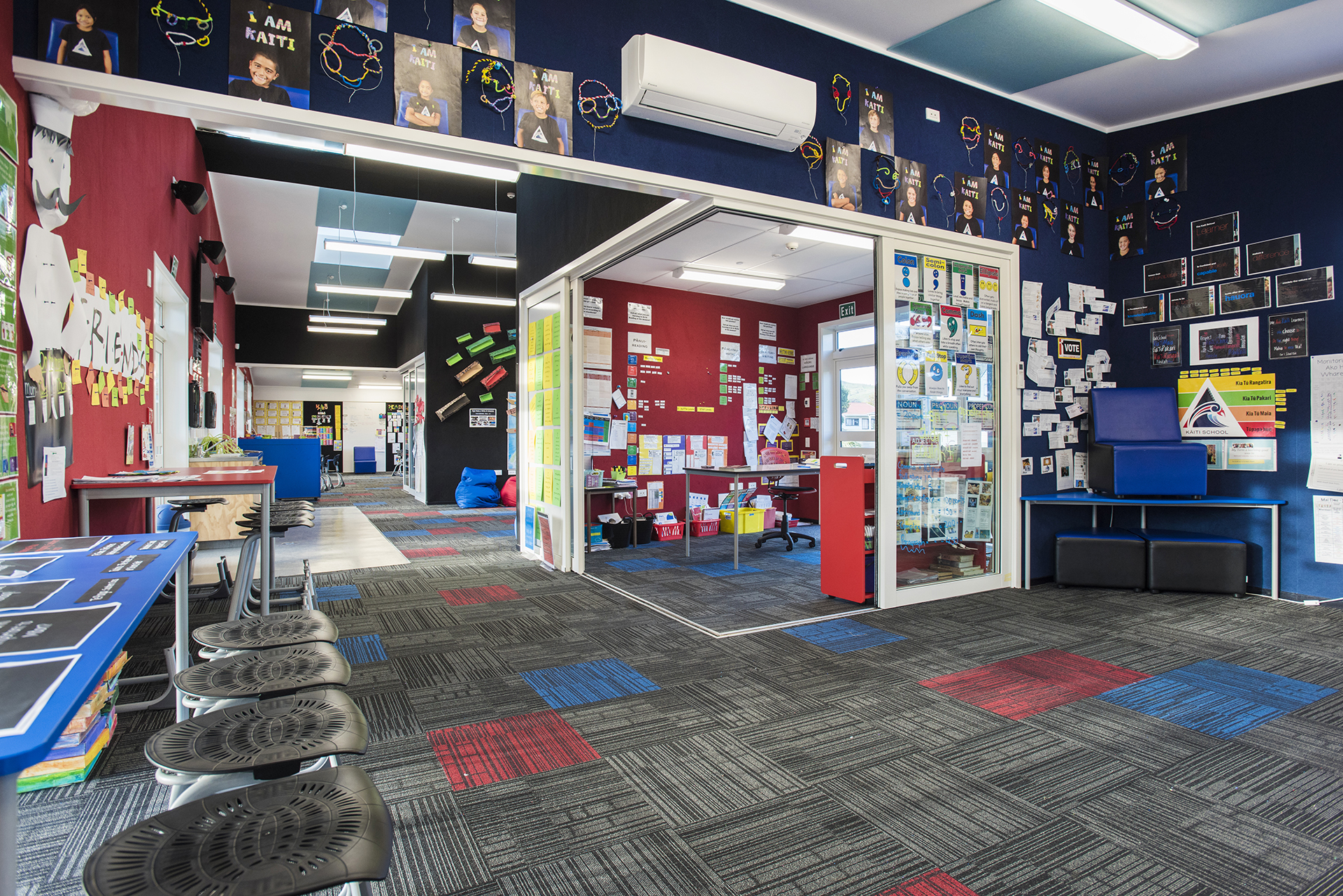 The design provides for modern teaching practices and reflects the culture of the mainly Māori students. Various learning preferences are supported, with bean bags, carpet, steps and desks providing a variety of spaces for learning. The whare-style space allows collaboration between larger groups of children inside and out.