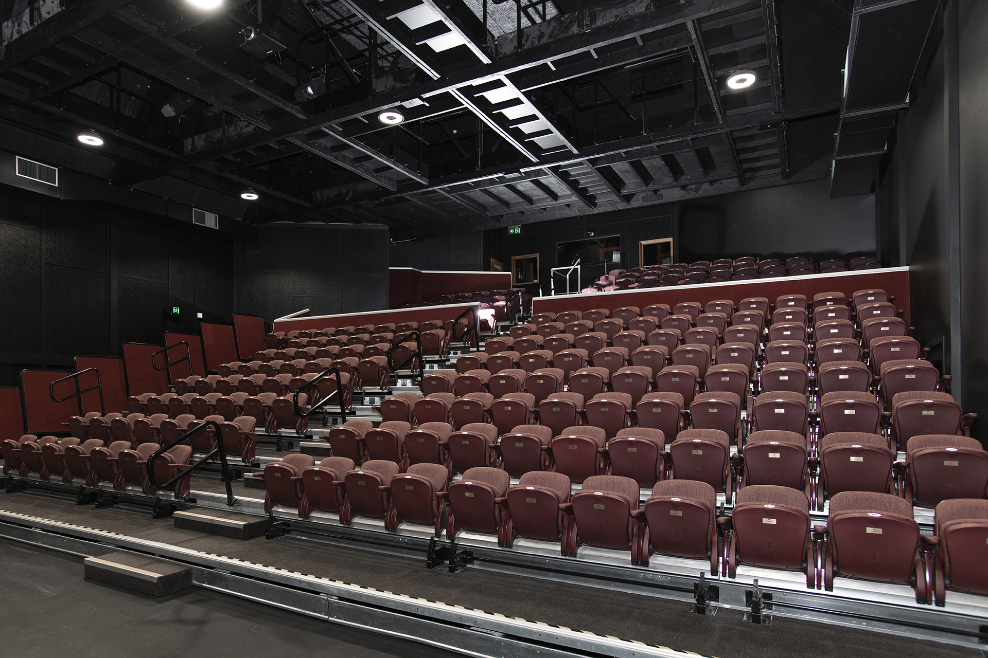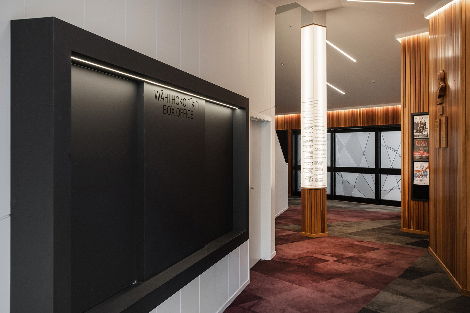 The rose was a strong existing theme in the theatre; the theatre sits within the river-side city rose gardens, its function room is named the ‘Rose Room’, and the rose is synonymous with performance. We took the rose as inspiration and abstracted it based on the faceted nature of the building to create a significant and strong entry and building iconography. This flows from the new entry into the floors, walls, ceilings, and graphics.