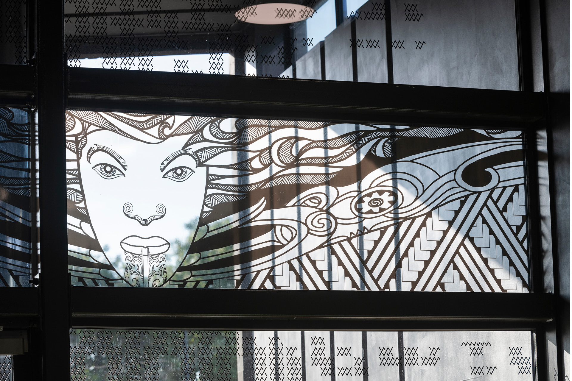 Custom designed whariki and tukutuku patters which are integrated into floor wall and ceiling designs